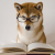 A shiba-inu reading a book with glasses.
