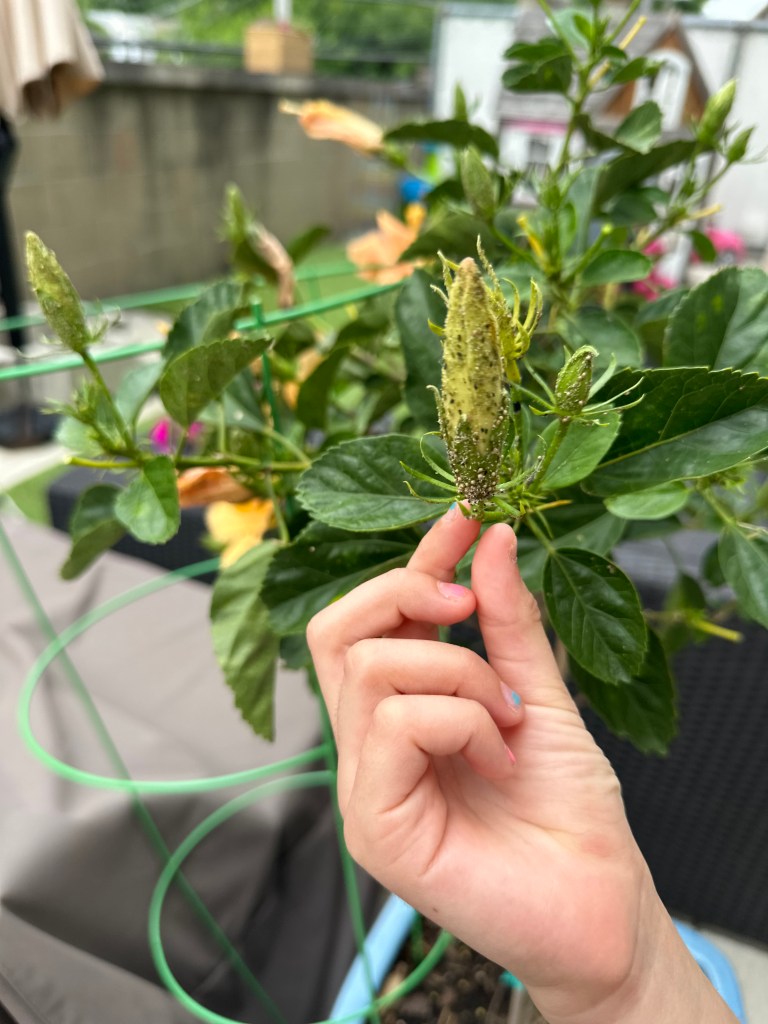 A couple of weeks ago, we bought a hibiscus tree from Home Depot. It was really pretty, the flowers were a nice orange. Then we started noticing bugs. Not too many at first, but soon they were covering the buds and flowers. The hibiscus tree doesn’t seem to be harmed by the bugs, but I wonder where the bugs came from.
